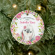 Le premier ornement de Noël du bébé comporte un petit lapin d'aquarelle doux avec une jolie couronne de fleurs d'aquarelle. Personnalisez avec votre nom et votre date de naissance. Un cadeau de gardien pour le 1er Noël du bébé.
