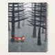 Un renard rouge sauvage solitaire se dresse sous les pins dans une forêt sombre. Pour la nature, la faune et les amoureux des animaux.