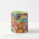 Le résumé coloré fleurit la tasse de café complètement de tous les couleurs, vert de chaux, rose, pourpre, bleus et rouges !