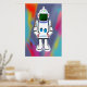 Un robot blanc sur un arrière - plan coloré. C'est une oeuvre d'art générée par l'IA.