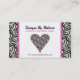 Le rose a équilibré le carte de visite de coeur d'impression de zèbre