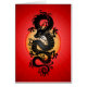 Cette conception chinoise noire débordante de dragon est accentuée pour lui donner un éclat léger sur la surface. Le dragon de tribal serpente autour de la tête vers le bas à la queue courbée. Quatre griffes pointues atteignent du corps créant un regard agressif. Un soleil circulaire et stylisé apparaît juste derrière le serpent avec briller éclaté par étoile rouge lumineuse dans toutes les directions. Cette conception élégante est une belle prise sur le dragon de chinois traditionnel.
