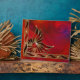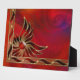 Une oeuvre abstraite en rouge et or. Un joyau rouge clair est entouré de flammes dorées accentuées de rubis étincelants et d'étoiles jaunes. Les fractales tourbillonnantes et en spirale de l'arrière - plan apparaissent dans des couleurs plus profondes à l'intérieur de la fibre dorée du motif de flamme.