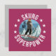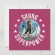 Illustration amusante des sports d'hiver, montrant des graphismes de montagne et une femme sur skis, et le dicton : le ski est ma superpuissance et mes petites étoiles. C'est le cadeau idéal pour tous ceux qui aiment le ski, les montagnes et les sports d'hiver.