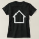Le T-shirt noir des femmes avec le logo blanc d'administration de récupération sur l'avant. Petits logo et "récupération Administration.Com, nouvelles de réutilisation de matériau de construction depuis 2011, Portland, Orégon" dessus arrière.