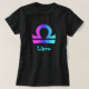Symbole de Balance dans pourpre et le bleu sur le tee - shirt noir des dames classiques. Les styles des hommes et des enfants également disponibles. Bénédictions heureuses de COM de point bonne de souhait heureuse.
