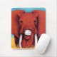 Tapis de souris de la peinture à l'huile originale de l'éléphant rouge tenant un blossum de lotus