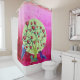 Le teckel poursuit l'art de coeurs sur la couleur rose d'arrière - plan de la douche Curtain.Beautiful.