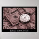 Une vieille montre de poche au-dessus de beaucoup de devises et les mots "Le temps est de l'argent"