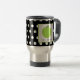 Une tasse de professeur comportant une illustration d'une pomme verte à l'intérieur d'un carré blanc avec l'équilibre vert. L'arrière - plan est noir avec le pois blanc et l'équilibre vert.
