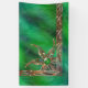 Une oeuvre abstraite en vert vif et en cuivre. Un bijou vert clair est entouré de lames d'herbe bordées de cuivre, agrémentées d'émeraudes étincelantes et d'étoiles oranges. Les fractales ondulantes et courbes de l'arrière - plan apparaissent en vert, marron et orange plus profond à l'intérieur du fil de cuivre du motif de la feuille.