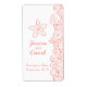 Beau plan simple dessin en blanc et corail orange rose d'une étoile de mer, avec tourbillons graphiques mariage vin étiquette. Idéal pour un mariage sur la plage, la côte inspirée par l'océan ou la mer. Modifiez ce étiquette avec vos propres mots. Conçu uniquement par Sarah Trett. Faire un grand cadeau personnalisé de mariage ou d'anniversaire au couple heureux, ou de donner comme faveurs de mariage aux invités ou simplement ajouter un merveilleux ajout personnalisé à la réception de mariage ou des tables de fête. Une partie de l'étoile de mer / étoile de mer avec un mariage graphique vague de la mer.