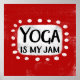 "Yoga Is My Jam" est un design de texte amusant avec une forme d'accent blanc entourée de points blancs texturés.
