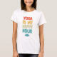 Le yoga est mon happy hour. Ce t-shirt raconte mon histoire. Mon heure en cours de yoga est l'une des plus heureuses de ma semaine. Un t-shirt de yoga ferait un grand cadeau pour un amoureux du yoga. Vient dans de nombreuses couleurs.
