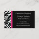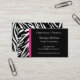 Le zèbre moderne et élégant barre les rayures noires et blanches de zèbre de caractéristiques de cartes de visite sur l'avant et le dos et une frontière rose d'accent sur l'avant. Tenez-vous avec ces cartes de visite uniques. Perfectionnez pour la variété de types et de professions d'affaires. Disponible en une série de couleurs et stock de carte. Personnaliser avec votre information personnelle ou d'affaires. Cliquez sur la "personnaliser il !" boutonnez pour changer le style de police, la taille des textes, la couleur des textes et les plus !