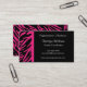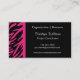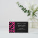 Le zèbre moderne et élégant barre les rayures roses de zèbre de caractéristiques de cartes de visite sur l'avant et le dos et une frontière rose d'accent sur l'avant. Tenez-vous avec ces cartes de visite uniques. Perfectionnez pour la variété de types et de professions d'affaires. Disponible en une série de couleurs et stock de carte. Personnaliser avec votre information personnelle ou d'affaires. Cliquez sur la "personnaliser il !" boutonnez pour changer le style de police, la taille des textes, la couleur des textes et les plus !