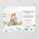 Une faire-part de mariage élégante et moderne qui permet d'ajouter une photo de couple de fiançailles. Présente une image de superposition verte et feuillue. Parfait pour les mariages à thème verdoyants. Champs de typographie des deux côtés et code de numérisation QR. ⭐ Ce faire-part de mariage tout-en-un comprend des champs de modèle texte sur les DEUX côtés, vous permettant d'ajouter votre cérémonie de mariage, réception, RSVP, registre des cadeaux et informations sur l'hébergement sans acheter de pièces jointes et de papeterie supplémentaires. Cette sélection garantit une alternative budgétaire de haute qualité tout en économisant de l'argent et en étant écologiquement responsable. Moins de feuilles de papier équivaut à moins de déchets ! Vous pouvez utiliser l'outil TRANSFER pour transférer cette conception à d'autres produits ou accéder au service LIVE DESIGNER GRATUIT de Zazzle via les options de votre site Web pour l'aide créative. Il est important de noter que vous pouvez inclure un code de numérisation QR avec cette invitation. Si vous n'en avez pas besoin, retirez simplement l'image ou remplacez-la par un logo, un graphique, un monogramme ou une photo. Zazzle dispose de nombreuses fonctionnalités de personnalisation pour vous aider à être créatif et à concevoir votre propre papeterie mariage. Nos invitations de mariage sont adaptées à toutes les saisons, y compris l'été, le printemps, l'automne, l'automne et l'hiver. Ils sont parfaits pour les mariages qui se tiennent à l'extérieur, à l'intérieur, sur la plage, dans une grange, à la campagne, sur une montagne, dans un lac, dans la forêt, ou dans les bois. ⭐ Profitez de votre aventure de planification mariage, enregistrez et suivez notre magasin, et épinglez à vos Pinterest boards. ⭐