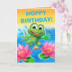 Leap Frog carte d'anniversaire personnalisée standard. Une de mes illustrations préférées. Cette petite grenouille sautante aime tellement les anniversaires et les fêtes qu'il saute tout droit de la photo. Idéal pour tous les objets de fête pour enfants, vous la trouverez sur des cartes, des invitations, des assiettes et divers vêtements pour enfants. Tous avec des âges et des noms personnalisables pour la fête sur mesure parfaite.