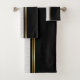 Un côté de ces serviettes élégantes est noir de jais solide et l'autre côté est une mer des ondulations, avec une rayure de frontière d'or entre ! Cet ensemble distinctif de serviette ajoutera la couleur et le style délicieux à votre décor de bain ! Une grande manière de commencer votre jour dans le style !