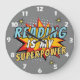 Pour les amateurs de livres. Style comique 'READING IS MY SUPERPOWER' horloge amateur de livre. Pour la crèche, la salle de classe pour enfants, la bibliothèque ou n'importe où qui promeut l'amour de la lecture.