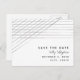 Un mariage élégant sauvez l'invitation de la date avec un motif rayé noir penser au sommet. Des invitations de mariage et d'autres objets de coordination peuvent être trouvés chez Jill's Paperie.