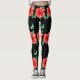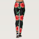 Moderne et stylisé rouge fleurie relevé leggings en noir, noir peut être personnalisé à n'importe quelle couleur