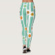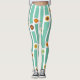 Ces leggings ont un design rétro des années 1970 de bandes bleues interrompues par des cercles en marron, orange et vert.