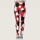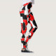 Ces leggings ont une conception Bauhaus de triangles, cercles, rectangles et pentagons en noir et blanc sur un champ de rouge.