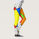 Ces leggings ont une conception Bauhaus de pentagons qui se chevauchent, colorés en rouge, jaune, orange, bleu et vert avec des lignes pointillées noires comme arrière - plan.
