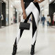 Leggings Bloc de couleur géométrique en bande blanche noire