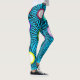 Ces leggings ont un design géométrique de cercles de différentes couleurs avec des lignes qui sortent sur un champ de bleu.