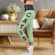 Célébrez votre amour félin en style avec Personnalisé Personnalisé Nom de l'animal de compagnie Stylish Cat Maman Fitness Portez un pantalon de Yoga! Ces jambières capri noires et vert pâle à la taille haute présentent une typographie minimaliste et audacieuse qui met en valeur le nom de votre chat, mêlant design moderne et fierté de maman de chat. Fabriqué en tissu doux, extensible et respirant, il offre un confort ultime pour des séances de yoga, des séances d'entraînement ou des vêtements décontractés. La coupe haute taille assure un ajustement flatteur et sécurisé, parfait pour les amoureux de les chats de tous les jours qui veulent rester chic et confortable. Customisez le vôtre aujourd'hui pour un look tout à fait unique !