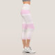 Three-color design with asymmetric stripes. Horizontal lines in three soft colors for your sporty Capri leggings. Add your name on the high waist athleisure. This variant is the pastel color scheme in grey, pink and white.