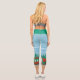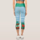 Pantalon de yoga capri bleu glacé avec flocons de neige dorés et motif du train de Noël.