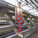 Bleu et rouge rayures géométriques traversant diagonalement motif, ce qui rend votre entraînement plus étonnant. Essayez ces leggings Capri et laissez vos commentaires.