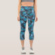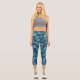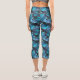 Les jambières de capri haut taille de ces femmes sont montrées dans un design bleu multicolore d'impression de palmiers tropicaux. Customisez cet objet ou achetez tel quel. Impression sous licence