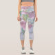 Leggings Capri Ciel bleu Vert Plante Feuilles Fleurs violettes