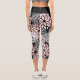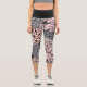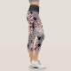 Sur un arrière - plan noir, ces jambières capri présentent un motif floral gris argenté et rose pâle. *Crédit pour design graphique pour Malachi Designs on Etsy.