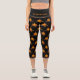 Citrouille noir élégant Capri Leggings, avec citrouilles orange dans un motif carrelé et texte CUSTOMIZABLE à la ceinture, qui lit actuellement MON CITROUILLE PANTS. Vous pouvez simplement modifier ce texte avec votre nom ou un autre texte, ou simplement supprimer selon vos besoins. Idéal à porter pendant la saison HALLOWEEN ou THANKSGIVING.