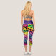 Ces leggings colorés ont un empreinte de léopard arc-en-ciel vibrant. Le texte sur les côtés pourpres dit "Vegan féroce" en rose toutes les polices casquettes