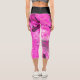 Une myriade de nuances roses sont mélangées avec des éclaboussures de noir, blanc et des chuchotements de gris sur ces leggings capris.
