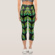 Ce Capri Leggings propose des feuilles lumineux vert néon sur l'art fractal noir. Leggings Capri modernes pour toute femme !