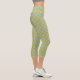Leggings Capri Fleurs bleues et jaunes Abstraites rétro sur vert