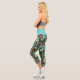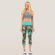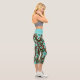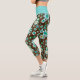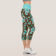 Fun capri leggings de retour motif qui présente des fleurs rétro mod aqua bleu et blanc sur arrière - plan marron. Le panneau de brassage est bleu aqua solide. N'oubliez pas de consulter les autres vêtements et accessoires de cette même collection de motifs.