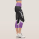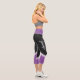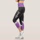 Ces leggings d'entraînement design noir et violet présentent un design floral blanc élégant sur un arrière - plan de lavande foncé sur le bracelet et sur les jambes avec des rayures blanches. Facile à personnaliser en ajoutant votre nom sur les deux côtés sur une police blanche de calligraphie.