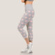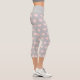Motif de coeur rose et blanc moderne et texte rose modifiable sur les Leggings gris argenté Capri. Le texte en rose et blanc peut être personnalisé