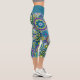 Leggings Capri Motif floral rétro funky avec nom - bleu turquoise