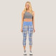 Ces leggings capris sont ornés d'un motif écossais coloré (plaid) aux couleurs blanc, bleu et taupe.