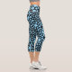 Leggings Capri haut taille dans le motif Sky Blue et Black Snowflake. Le noir combiné à une seule couleur fait une fonctionnalité étonnante, ici combiné à un motif qui ressemble à un flocon de neige.