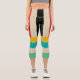 Belles Leggings Capri colorés pour les femmes en noir, rouge, jaune et vert avec répétitions géométriques.